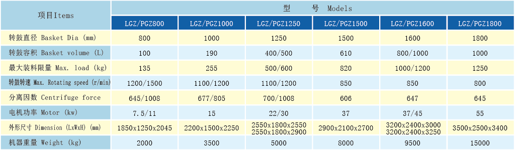 LGZ800 | LGZ1000 | LGZ1250 | LGZ1500 | LGZ1600 | LGZ1800 | |